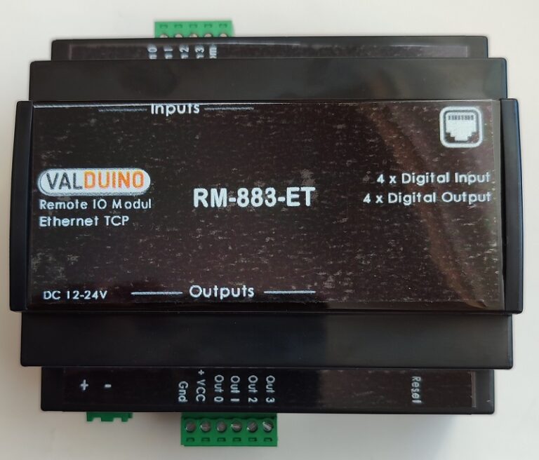 Modbus IO (Giriş / Çıkış) cihazıdır. Modbus TCP üzerinden çıkışları kontrol etmenizi veya girişlerin durumlarını öğrenmenizi sağlar.