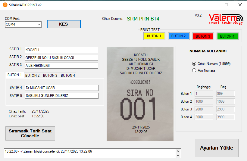 Cihazda bulunan her buton ortak veya farklı sıra numarası yazdırmaktadır. indirdiğiniz programdan istediğiniz şekilde ayarlanır